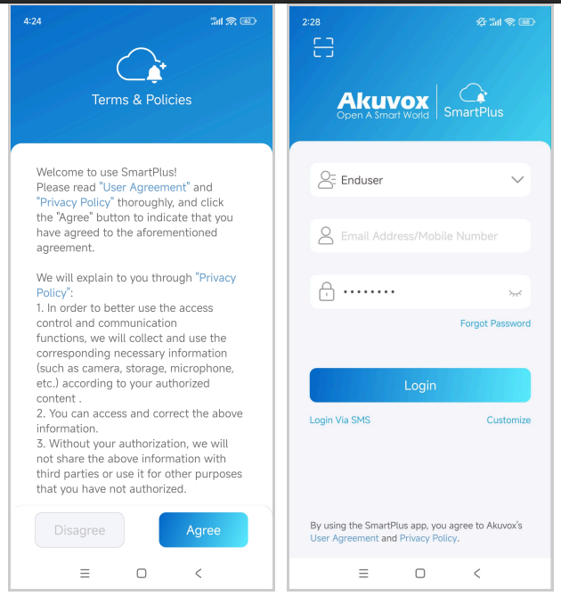 Before logging in, select End User. To use the SmartPlus App, you need to agree to